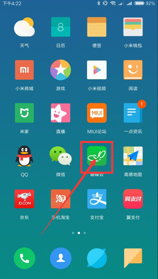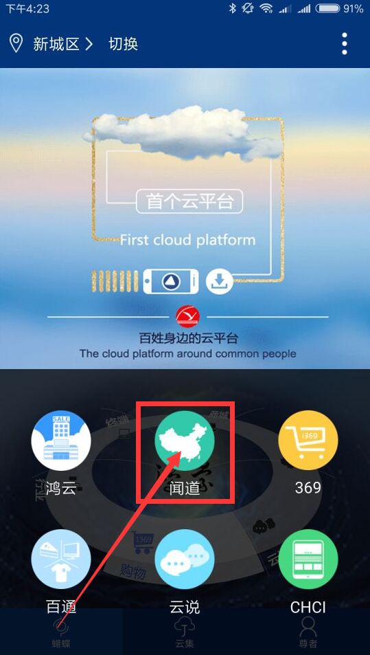 1.点击手机APP蝴蝶云图标,进入蝴蝶云界面。(如下图)