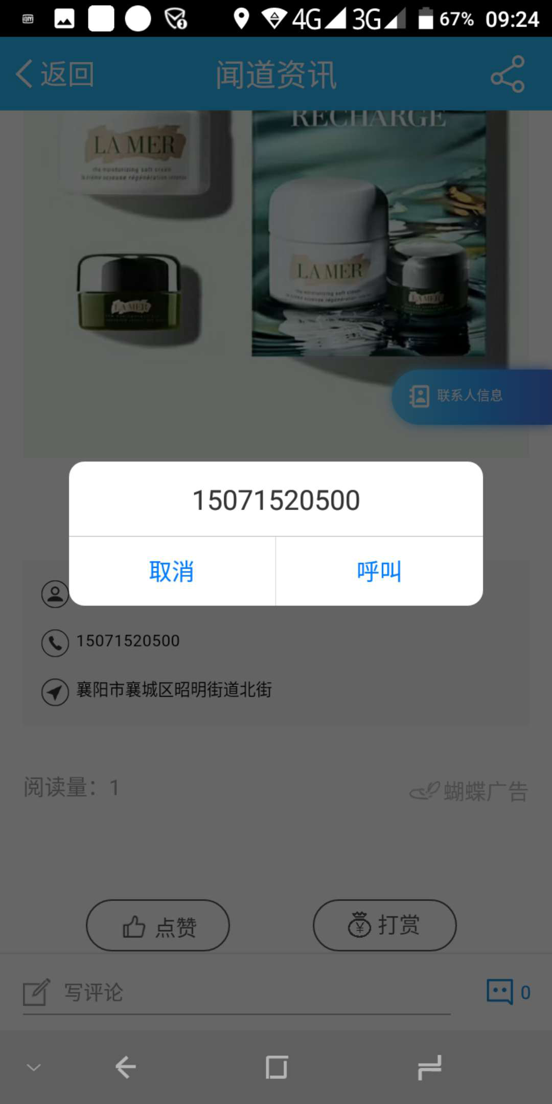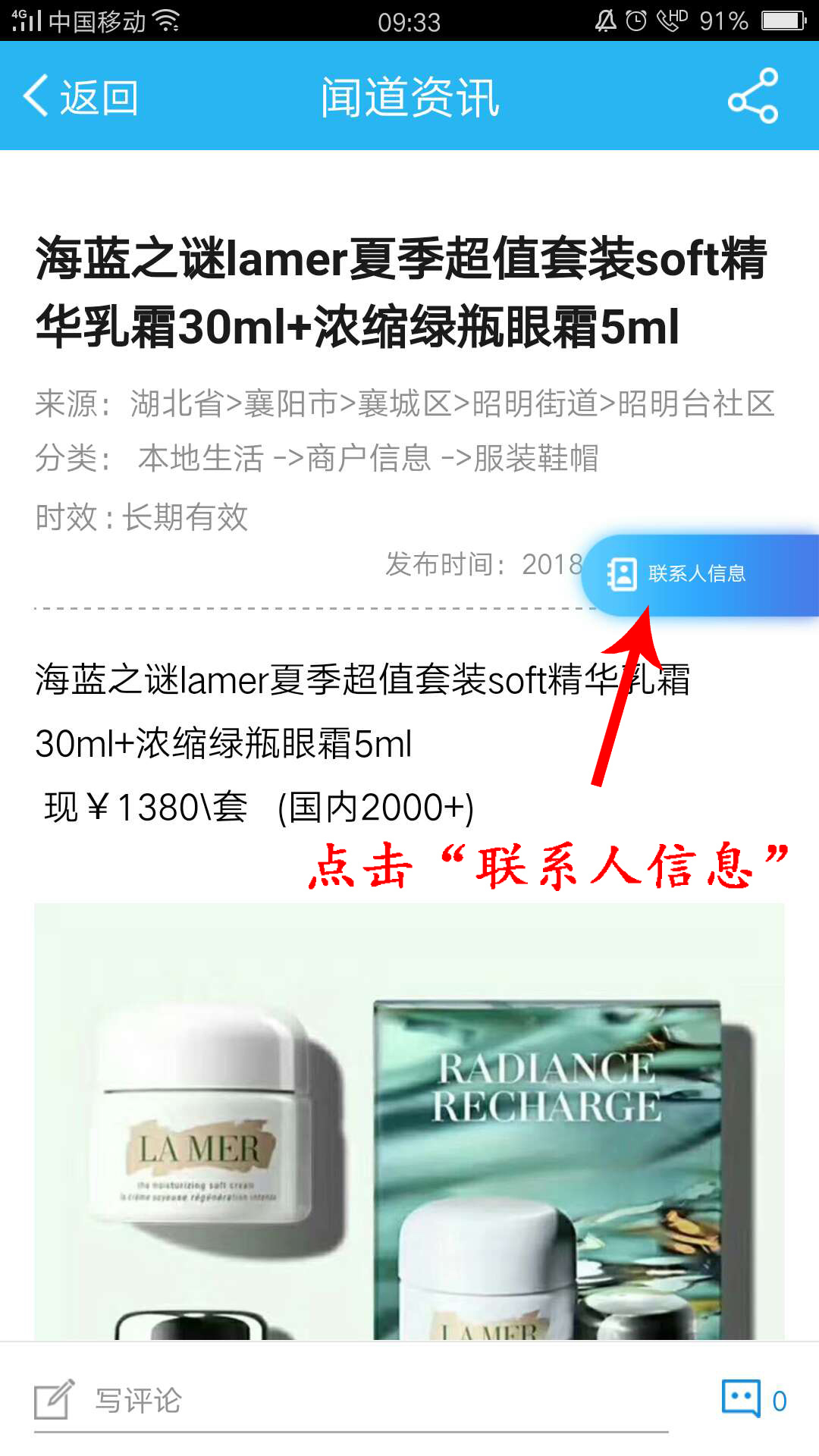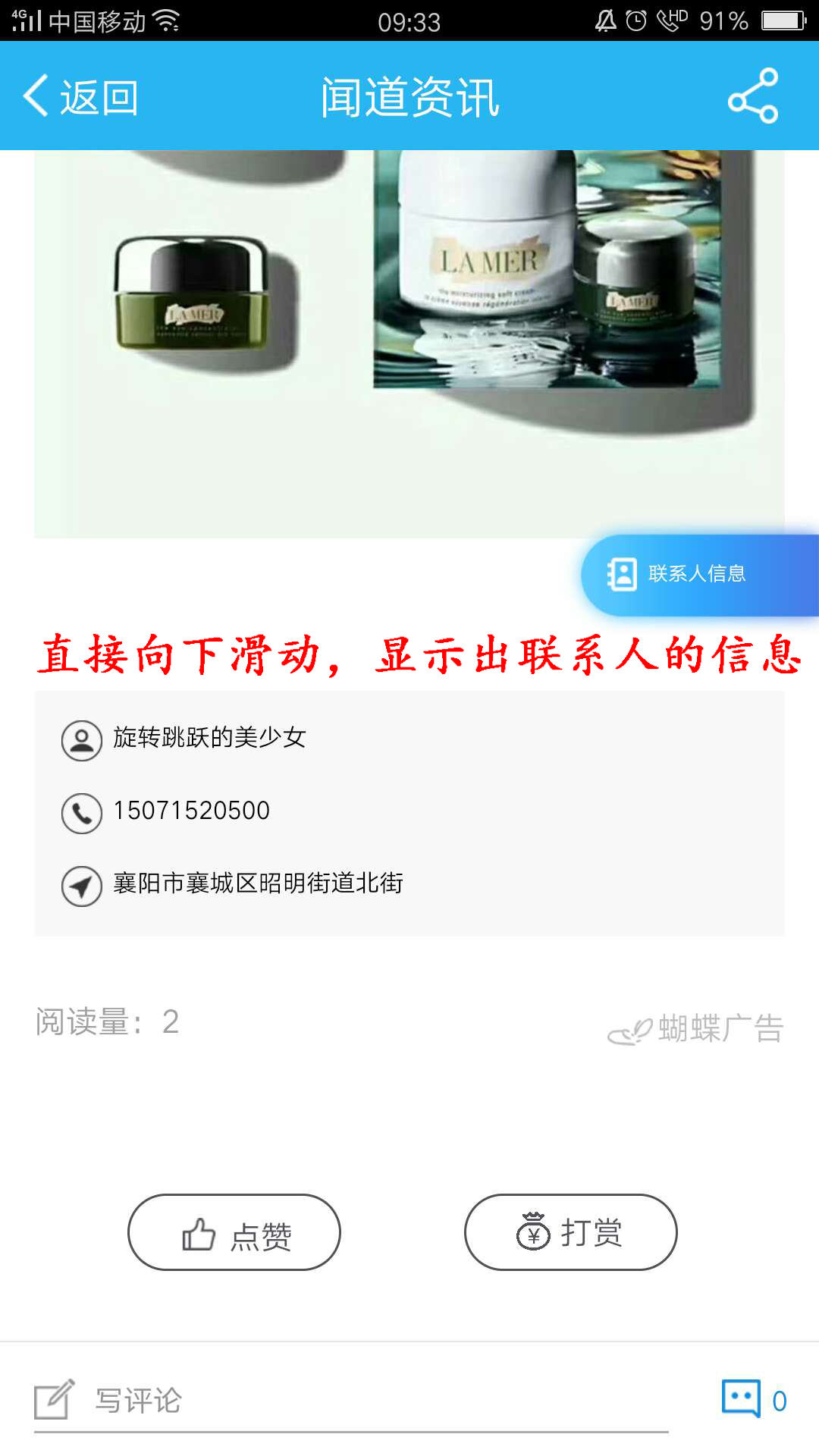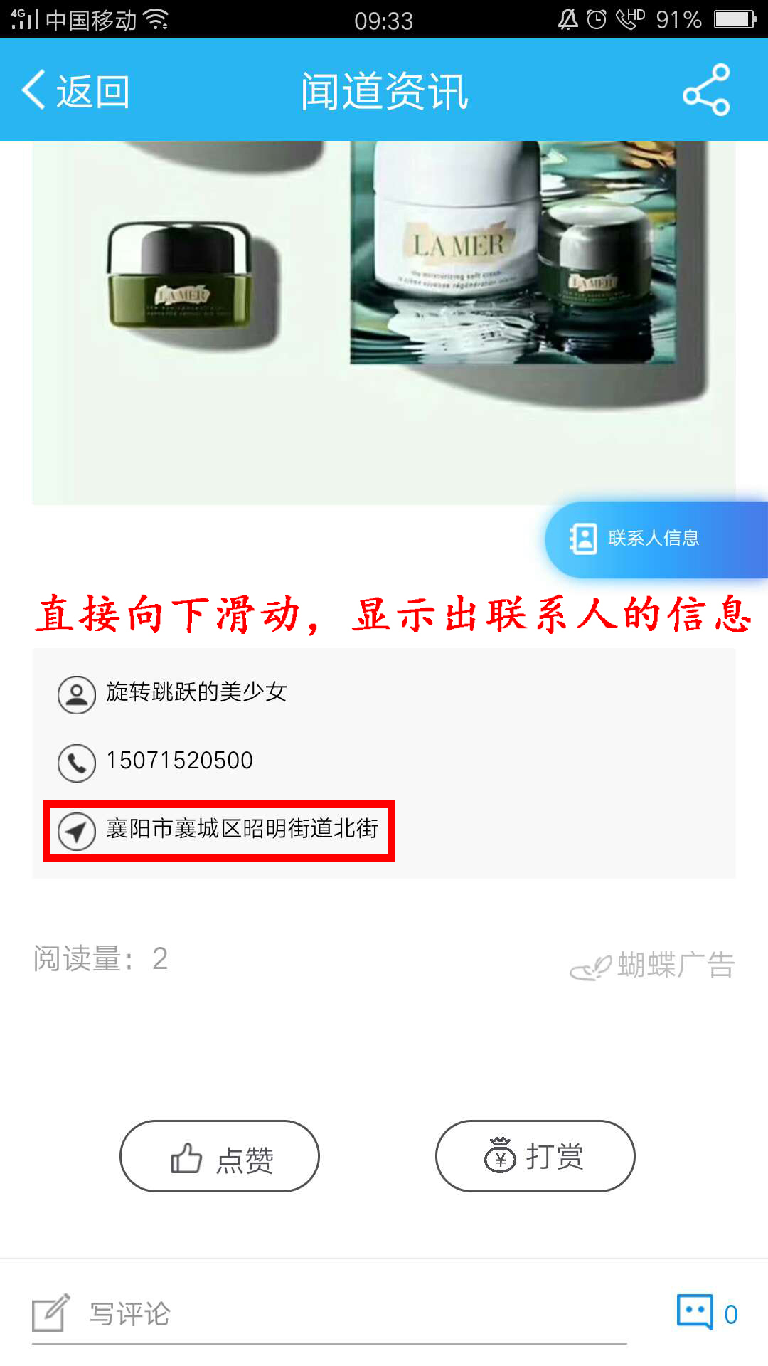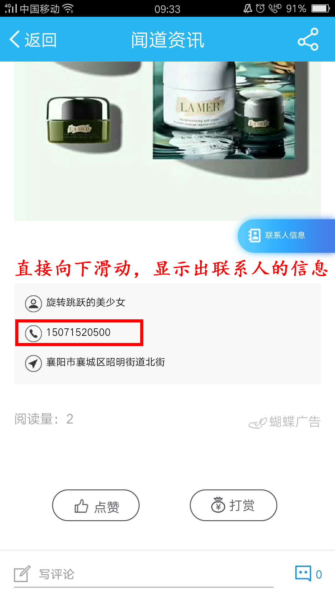 10.点开这条资讯后,我们发面里面的内容挺不错的,那么我们可以点击右边的“联系人信息”(如下图)