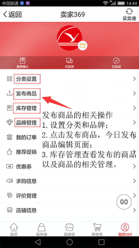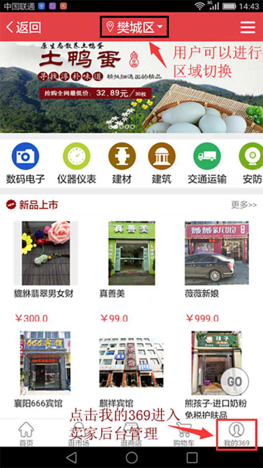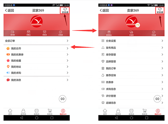 5.进入商城之后,点击屏幕右下方“我的369”按钮,进入买家后台。(如下图)